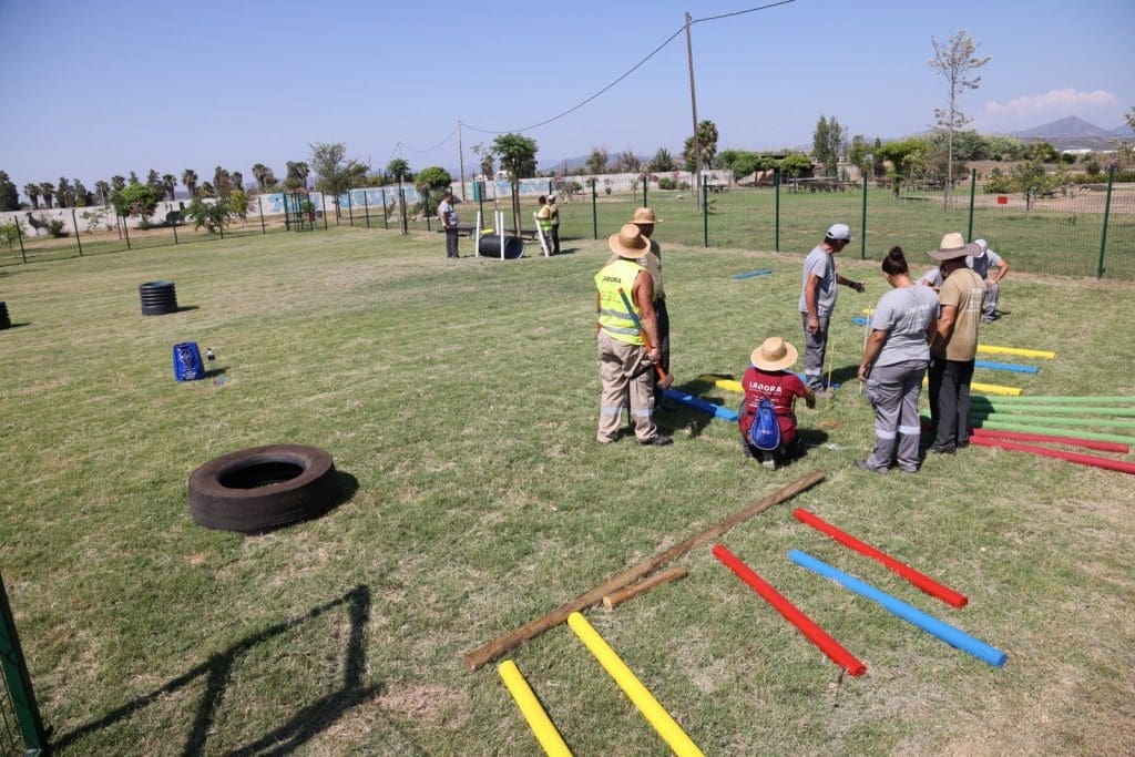 Este nuevo parque canino y Agility, el cuarto en la localidad, apuesta por la sostenibilidad ambiental, ya que todos los juegos se están construyendo con materiales reciclados.