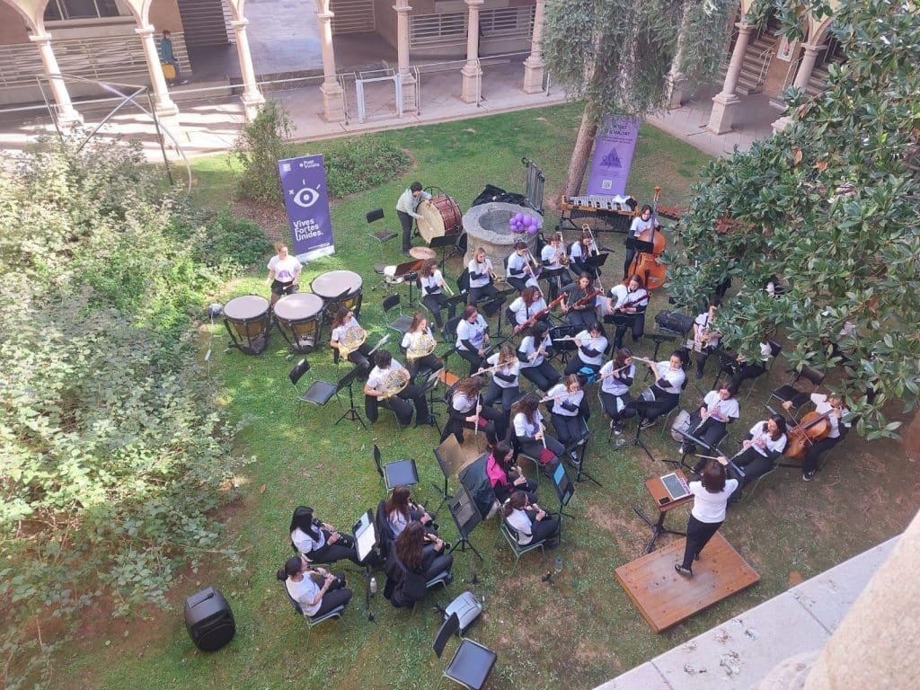 El concierto se ha celebrado a las 12p.m. del día de hoy en el patio del edificio del «Mestre Tàrrega» , concierto que ha tenido mucho éxito, sobre todo entre el alumnado y trabajadores de este centro, quienes han estado ahí también para celebrar un día como este.