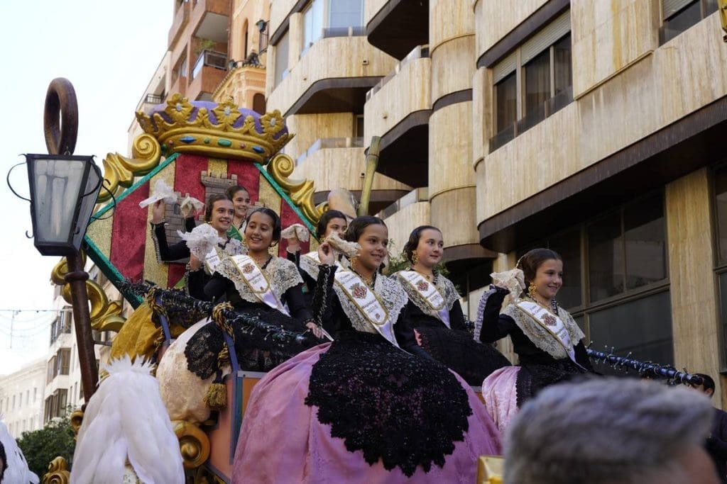 Más tarde ha sido el turno para la parte mitológica, historia fundacional, las delegaciones entre las que han destacado las de las Fallas de Valencia y la Fallera Mayor Infantil, Lucía García Rivera; Fogueres de Alicante, con su Bellea Infantil, Martina Lloret o Fallas de Burriana, con la reina fallera infantil, Valeria Cuadros.