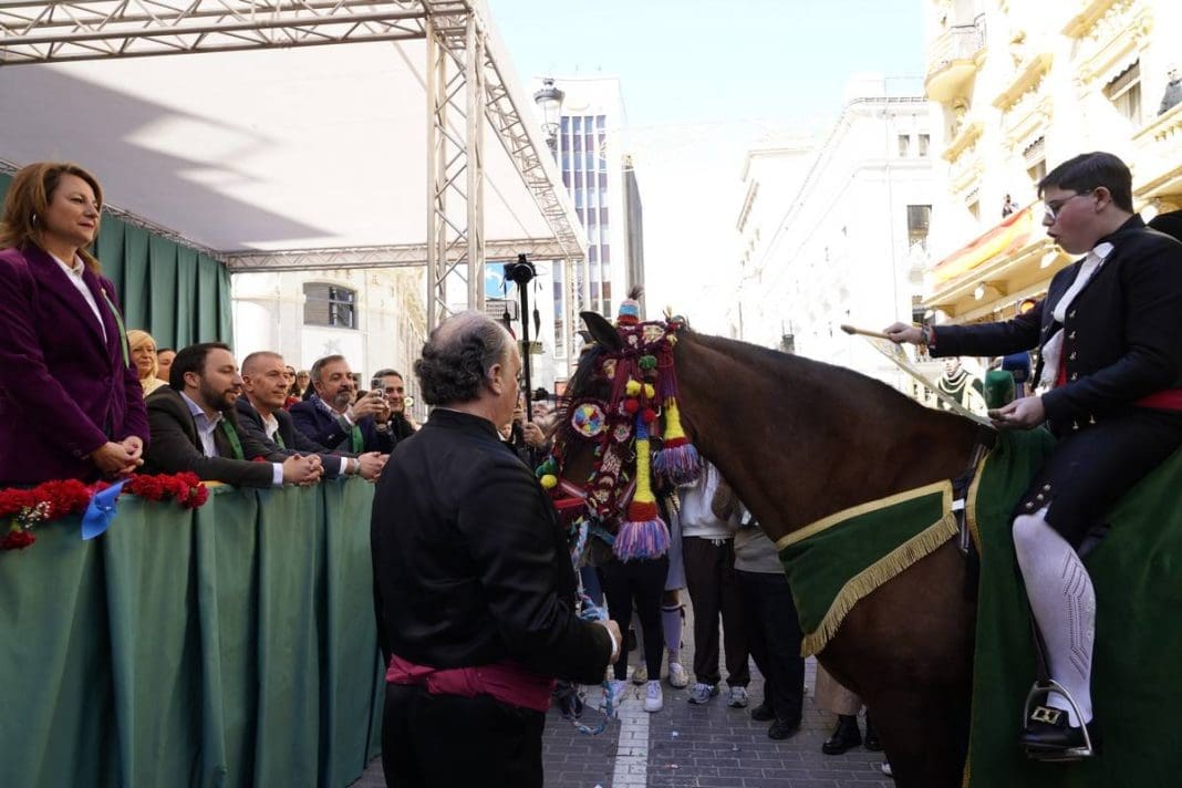 La alcaldesa, Begoña Carrasco, ha presidido en la tribuna de la Puerta del Sol este acto, junto a la reina de las Fiestas, Paula Torres, la concejala de Fiestas, Noelia Selma, además de contar con la presencia de la Fallera Mayor de Valencia, Berta Peiró y la Bellea del Foc de Alicante, Alba Muñoz, y de la reina infantil de la Huerta de Murcia, Alexia Montemayor, en este acto que se celebra en el lunes festivo y que supone la tercera jornada de las Fiestas de la Magdalena. En la tribuna también ha habido presencia de concejales de la corporación municipal y diputados provinciales.