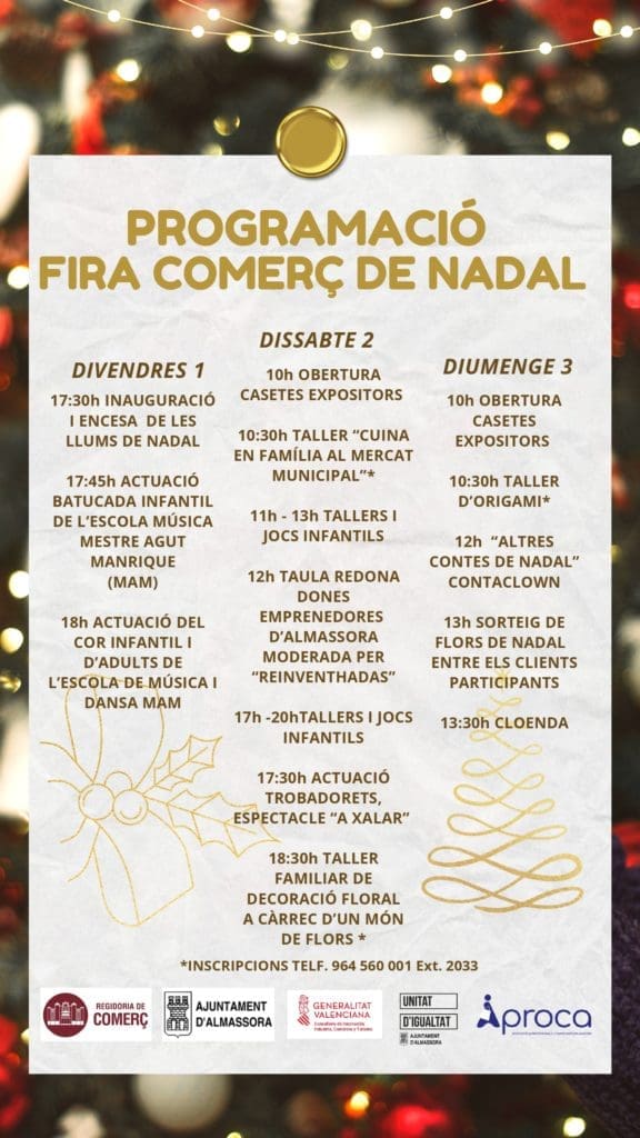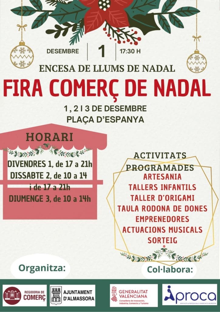 El Ayuntamiento de Almassora apuesta por su comercio local con la celebración de la Fira de Nadal, que abrirá sus puertas el próximo viernes, 1 de diciembre, en la plaza España, coincidiendo con el encendido de luces navideñas.