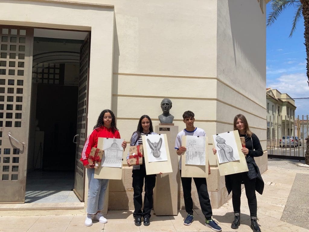 Así pues, el alumnado de la optativa de Dibujo de tercero y cuarto de la ESO y de primero de Bachillerato Artístico del IES Gilabert de Centelles ha realizado un dibujo relacionado con el Museo de Medallística, en concreto podían elegir dibujar las esculturas que se encuentran en el patio del museo o dibujar el propio edificio del museo.