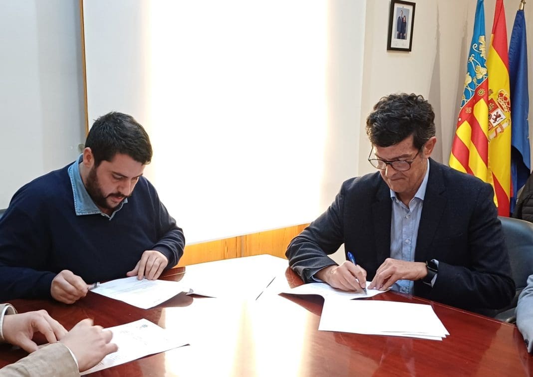 El presidente de Facsa, Enrique Gimeno, junto al Alcalde de Nules, David García, han firmado hoy la renovación del convenio que asegura el suministro de agua potable a las familias en situación de vulnerabilidad social.