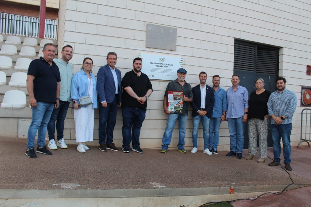 Jocs Esportius de Nules “Joan Molés” es el nombre que a partir de ahora tendrán los tradicionales Jocs Esportius de Nules, de hecho ayer tuvo lugar el acto de nombramiento con el descubrimiento de una placa que se ha instalado en el campo de fútbol Noulas Antonio Pérez Balada, donde cada año se celebran las finales de estos juegos deportivos.