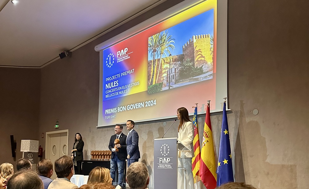 El Ayuntamiento de Nules ha recibido uno de los Premios al Buen Gobierno que concede la Federación Valenciana de Municipios y Provincias (FVMP) gracias al proyecto ‘Conciertos en los vestigios bélicos de Nules’, distinguido en la categoría de Turismo 2024. El reconocimiento se ha entregado en el IVAM de València durante la gala bienal en la que se han otorgado los galardones correspondientes a los años 2024 y 2025.