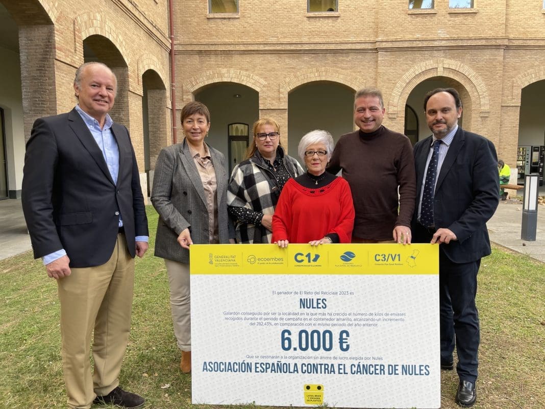 De modo que, la Consellería de Medio Ambiente, Agua e Infraestructuras y Territorio en colaboración con los consorcios y Ecoembes han entregado hoy el premio de la sexta edición de “El Reto del Reciclaje 2023” al Ayuntamiento de Nules. Un premio que está dotado con 6.000 euros que se ha destinado a la Asociación Española contra el Cáncer (AECC) de Nules.
