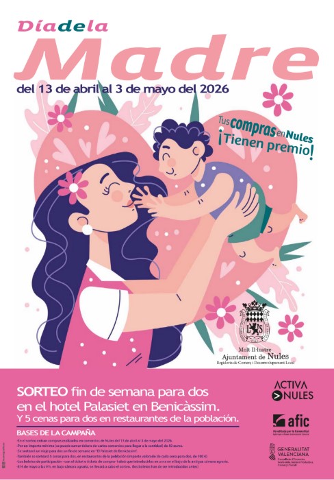 Nules lanza una nueva campaña de promoción del comercio local con motivo del Día de la Madre, que se celebra el primer domingo del mes de mayo, y da continuidad de nuevo al lema “Tus compras en Nules. ¡Tienen premio!”.