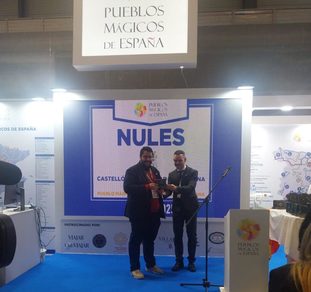 Nules ha recibido hoy el “Premio Pueblo Mágico Comunitat Valenciana 2025” de la Asociación de Pueblos Mágicos de España. Un reconocimiento que se ha entregado en la Feria Internacional de Turismo (FITUR) que se celebra estos días en Madrid.
