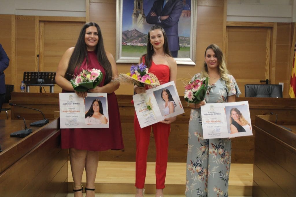 El acto ha servido también para despedir a la Reina de la Vila 2019, Jéssica Gozalbo Romero, y a las damas de la Corte de Honor, Cristina Cuesta Valero, dama del barrio Sant Xotxim, y Zaila Ferrer Moldenhawer, dama de Mascarell, que por la situación sanitaria registrada desde el año 2020 han representado al municipio de Nules los dos últimos años.