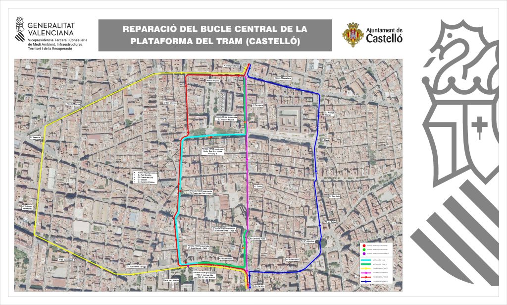 La Generalitat Valenciana, a través de la Vicepresidencia Tercera y Conselleria de Medio Ambiente, Infraestructuras, Territorio y de la Recuperación, ha iniciado los trabajos previos para el comienzo de las obras de reparación integral de la plataforma del TRAM de Castellón de la Plana. Estas obras arrancarán el próximo lunes 12 de enero en el denominado bucle central del trazado urbano.