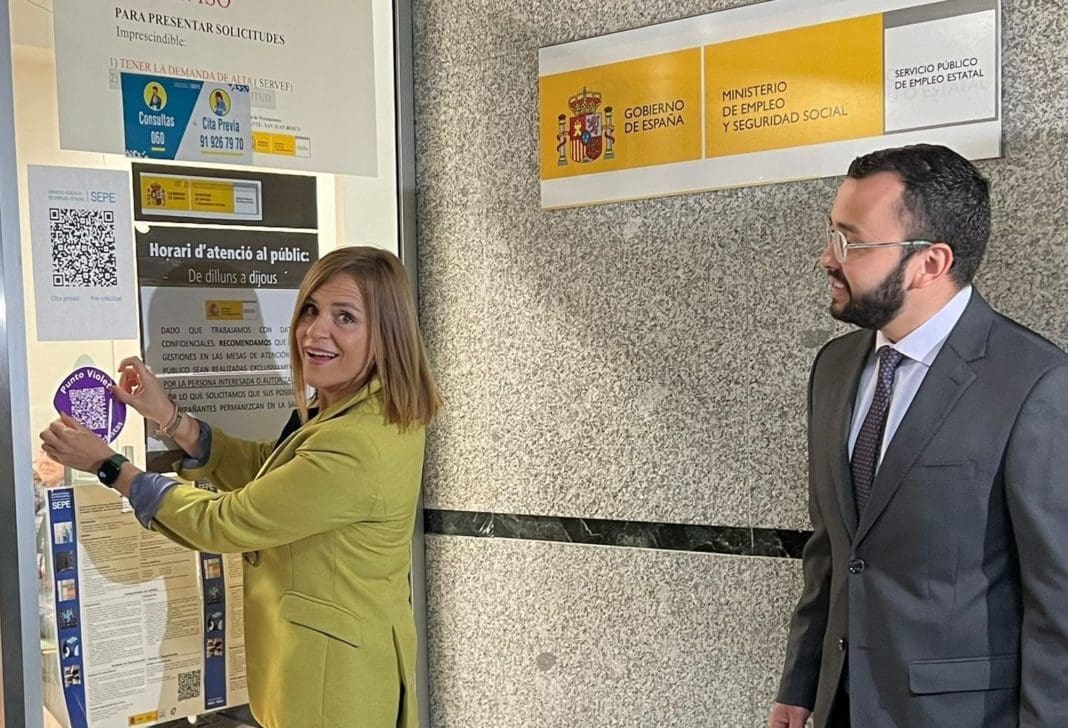 La delegada del Gobierno, Pilar Bernabé, ha visitado esta mañana una de las oficinas del Servicio Público de Empleo Estatal (SEPE) de la ciudad de Alicante que se ha convertido en una de las primeras de la Comunitat Valenciana en albergar un Punto Violeta de atención a las víctimas de violencia machista.