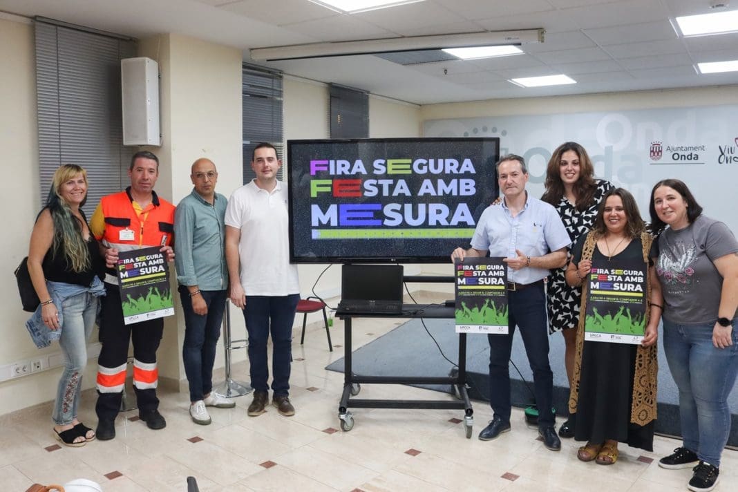 El Ayuntamiento de Onda, a través de las áreas de Servicios Sociales, Igualdad y Fiestas, ha presentado durante la tarde del miércoles la campaña ‘Fira Segura, Festa amb Mesura’ que persigue el objetivo de concienciar a los ondenses y visitantes, especialmente entre los jóvenes, sobre la violencia de género y el consumo responsable de alcohol durante la semana de fiestas patronales.
