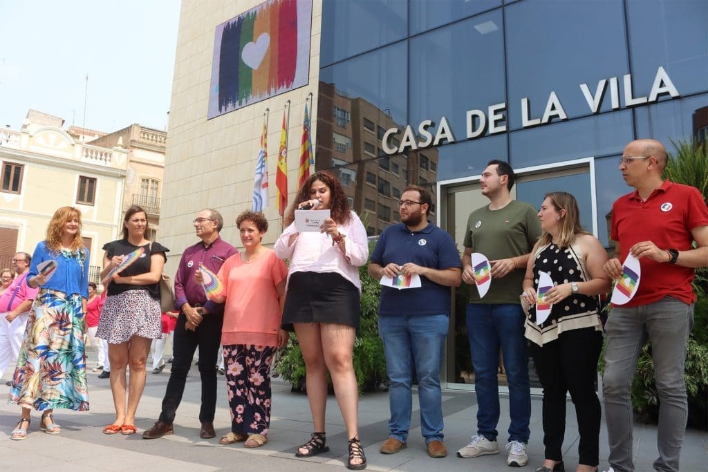 Frente a las puertas del ayuntamiento, un nutrido grupo de ondenses se ha congregado para participar en un acto institucional en el que la concejala de Igualdad y Barrios, Marta Villanueva, ha tomado la palabra para leer un manifiesto en defensa de la igualdad y los derechos del colectivo LGTBI.