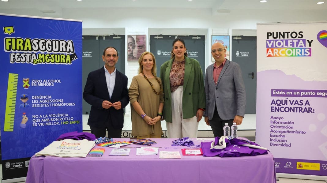 El Ayuntamiento de Onda ha presentado esta mañana los nuevos kits de detección de sustancias químicas, que estarán disponibles en los Puntos Violeta durante la Fira d’Onda. Estos kits, pioneros en la Comunidad Valenciana, permiten identificar rápidamente si una bebida ha sido adulterada con sustancias de sumisión química. El acto ha contado con la presencia de la Secretaria Autonómica de Igualdad y Diversidad, Asunción Quinzá Alegre; el concejal de Servicios Sociales, Óscar Valero, y la concejala de Igualdad, Marta Villanueva.