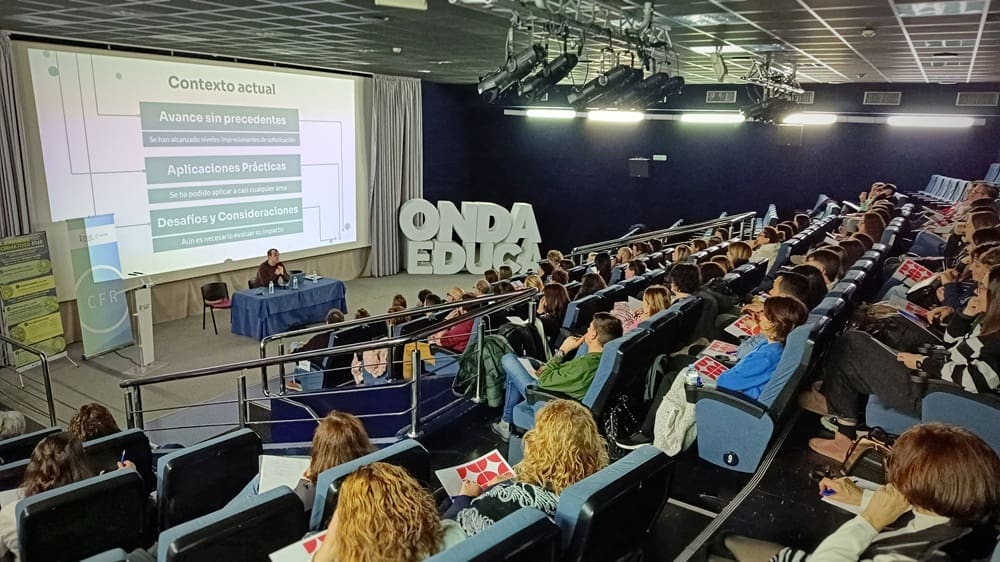 La concejala de Educación, María Ojeda, ha sido la encargada de abrir el encuentro y ha destacado la necesidad de afrontar los desafíos de la inteligencia artificial con un enfoque inclusivo y equitativo: “La inteligencia artificial es una realidad en nuestras aulas, y tenemos la responsabilidad de conocer sus aplicaciones y sus implicaciones para aprovechar su potencial educativo sin ampliar la brecha tecnológica”. Además, ha subrayado el compromiso del Ayuntamiento con la formación continua del profesorado: “Desde Onda apostamos por ofrecer a nuestros docentes espacios de aprendizaje donde puedan adaptarse a nuevos retos”.