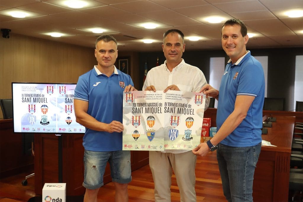 El Ayuntamiento de Onda ha presentado esta tarde, junto al C.D. Onda, una nueva edición del tradicional Torneo de fútbol de San Miguel. Así, centenares de aficionados volverán a darse cita en Onda para disfrutar de la IV edición femenina y la XIII edición masculina de esta popular competición que se celebrará el sábado 9 y domingo 10 de septiembre, respectivamente.