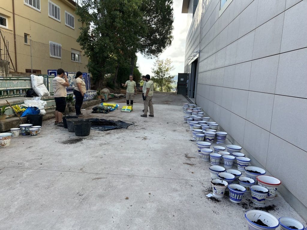 La instalación de todas las macetas y paneles a lo largo de la avenida se completará durante la primera semana de septiembre, abarcando desde la Font de la Força hasta el túnel de entrada. Así, los alumnos del Programa de jardinería T’AVALEM Onda III han sido los encargados de preparar las macetas con flores verdolagas.