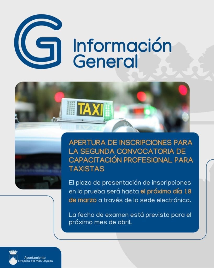 El Ayuntamiento de Oropesa del Mar ha anunciado la convocatoria de la segunda prueba del año 2025 para la obtención del certificado de capacitación profesional para aquellas personas que quieran trabajar como conductores de taxis en el municipio. Esta prueba es un requisito indispensable para aquellos que deseen obtener la autorización para operar como conductores de taxis en la localidad.
