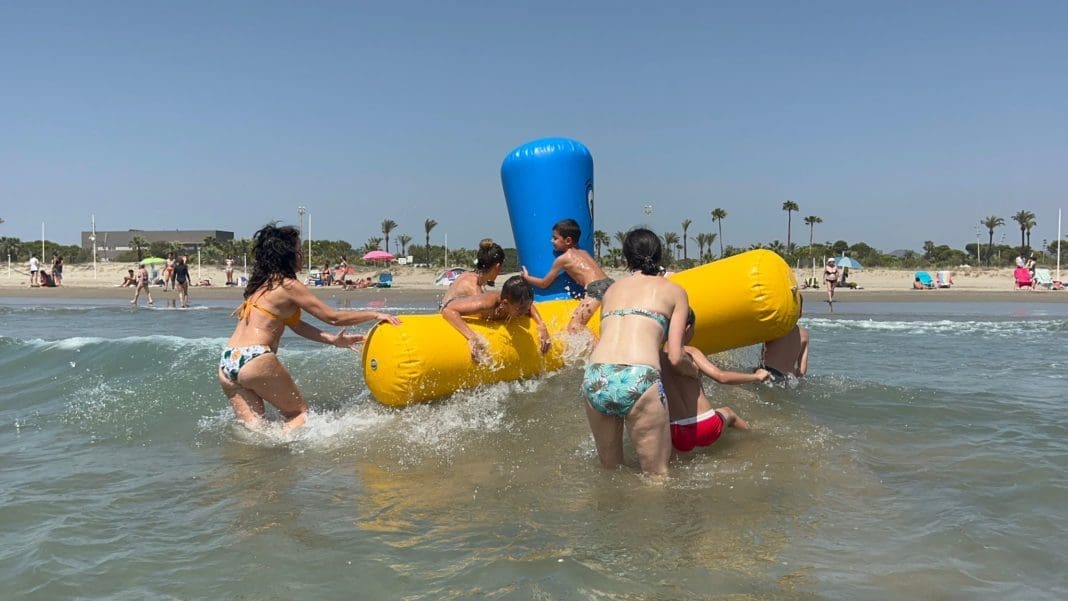 Más de 300 personas en los parques acuáticos gratuitos y con vales descuento que dinamizan las playas de Castelló