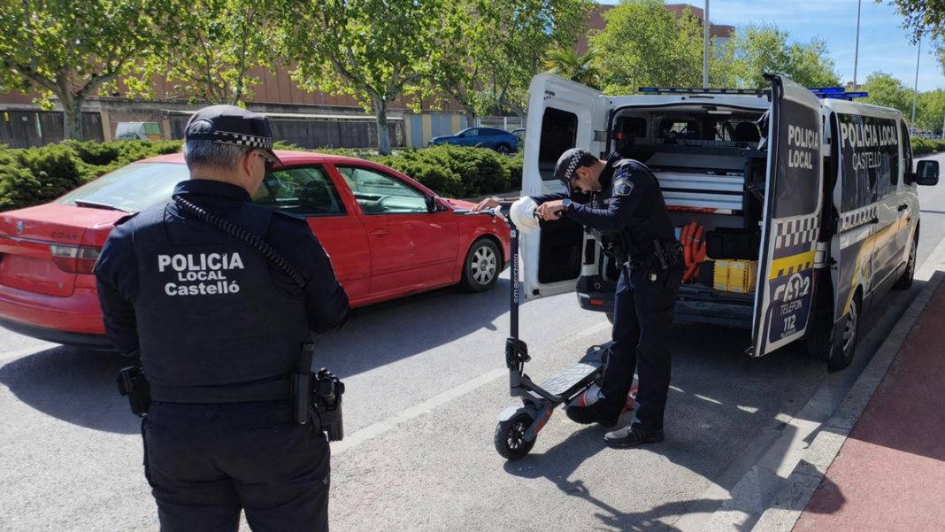 La Policía Local de Castellón ha intervenido un vehículo de movilidad personal (VMP) tras comprobar que superaba ampliamente la velocidad máxima permitida por la normativa vigente. Los hechos ocurrieron el pasado 5 de abril, cuando una patrulla detectó a dos menores circulando con patinetes eléctricos por la carretera de Borriol.