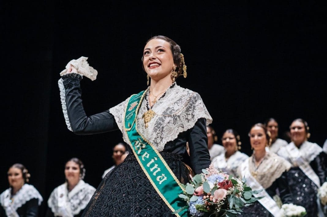 Al son de la Marcha de la Ciudad y como marca el protocolo del acto, la alcaldesa de Castelló ha tomado la banda verde, símbolo de máxima distinción para proclamar oficialmente a Paula Torres Claramonte como Reina de las Fiestas de Castelló 2025.