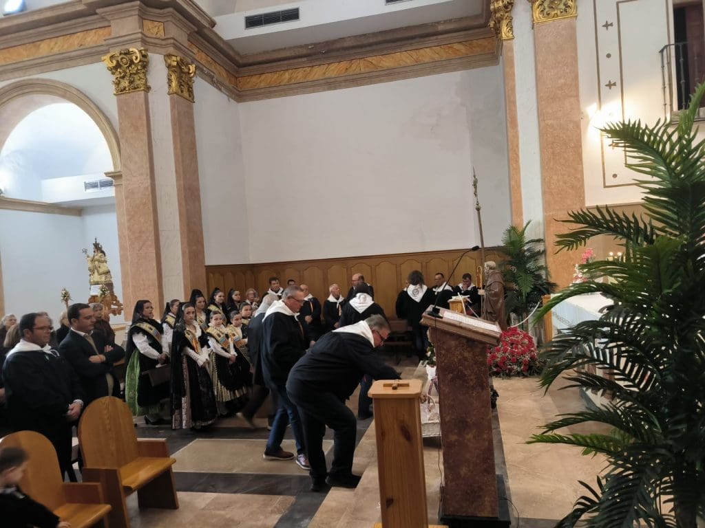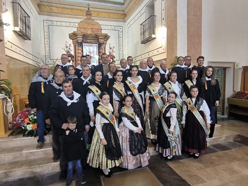 La jornada ha arrancado con una pequeña procesión desde la Plaza del Ayuntamiento hasta el ermitorio de la Virgen de la Ermitana, Patrona del municipio, donde se ha llevado a cabo la misa en la que se ha realizado la imposición de pañuelos al Mayoral del año, José Vicente Castillo Fernández, y al Mayoral que ha cumplido 25 años en la agrupación, Vicente Albiol.