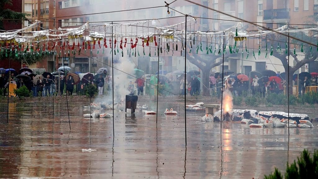 A pesar de las inclemencias meteorológicas, la Pirotecnia Martí ha ofrecido una exhibición vibrante, en la que el sonido y la emoción han vuelto a inundar el ambiente festivo.
