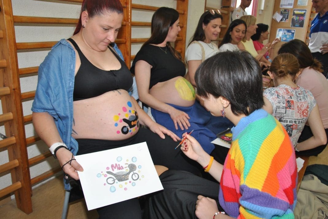 El equipo de matronas de Atención Primaria del Departamento de Salud de Castellón ha reunido hoy a un grupo de mujeres embarazadas. Sin embargo, la peculiaridad es que sus barrigas se han convertido en lienzos. La iniciativa ha sumado a las futuras mamas, el alumnado de Bachillerato de Arte de los institutos Porcar y Sos Baynat de Castellón. El resultado ha sido, un original taller terapéutico de belly painting o pinta barrigas.