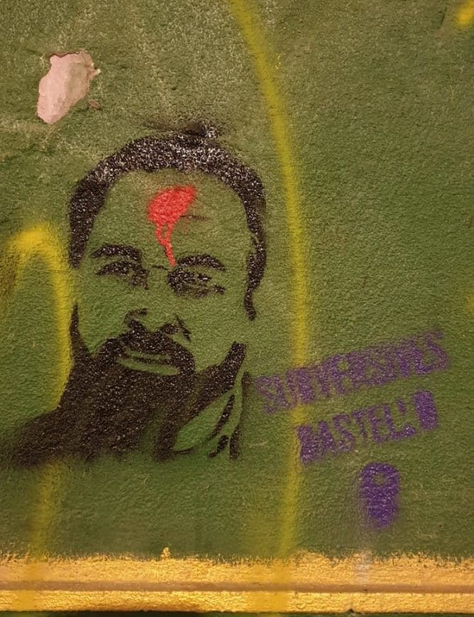 A Castelló van tornar a aparéixer, amb la signatura del grup feminista radical “subversives”, amenaces de mort contra Santiago Abascal, concretament al Carrer Alloza, cantonada amb Colón.