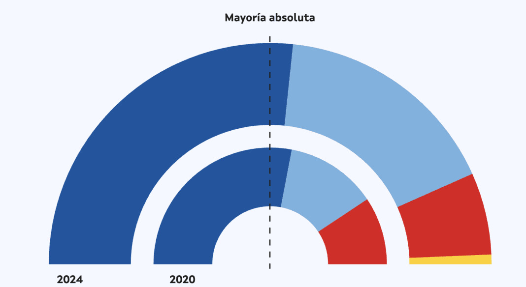 En una noche electoral que consolida el poder del Partido Popular (PP) en Galicia, el centro-derecha se ha impuesto una vez más en las elecciones autonómicas, asegurando una mayoría absoluta que les permitirá continuar al mando de la Xunta por cuatro años más sin necesidad de pactos. Con el escrutinio completado en un 89,88%, el PP ha obtenido 40 escaños, dos menos que en las elecciones de 2020 pero suficientes para mantenerse por encima del umbral de la mayoría absoluta en el Parlamento gallego.