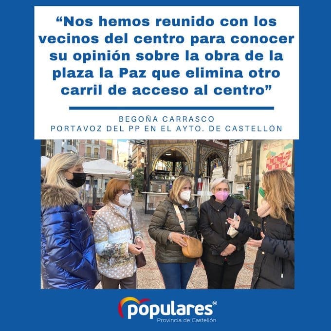 El principal partido de la oposición en el ayuntamiento de Castelló, el PP, ha llevado esta semana una ronda de contactos con los comerciantes de la plaza de la Paz que se verán afectados por la próxima reforma de este espacio y ha vuelto a hacer público hoy su crítica respecto la falta de información del proyecto de cara a los vecinos.