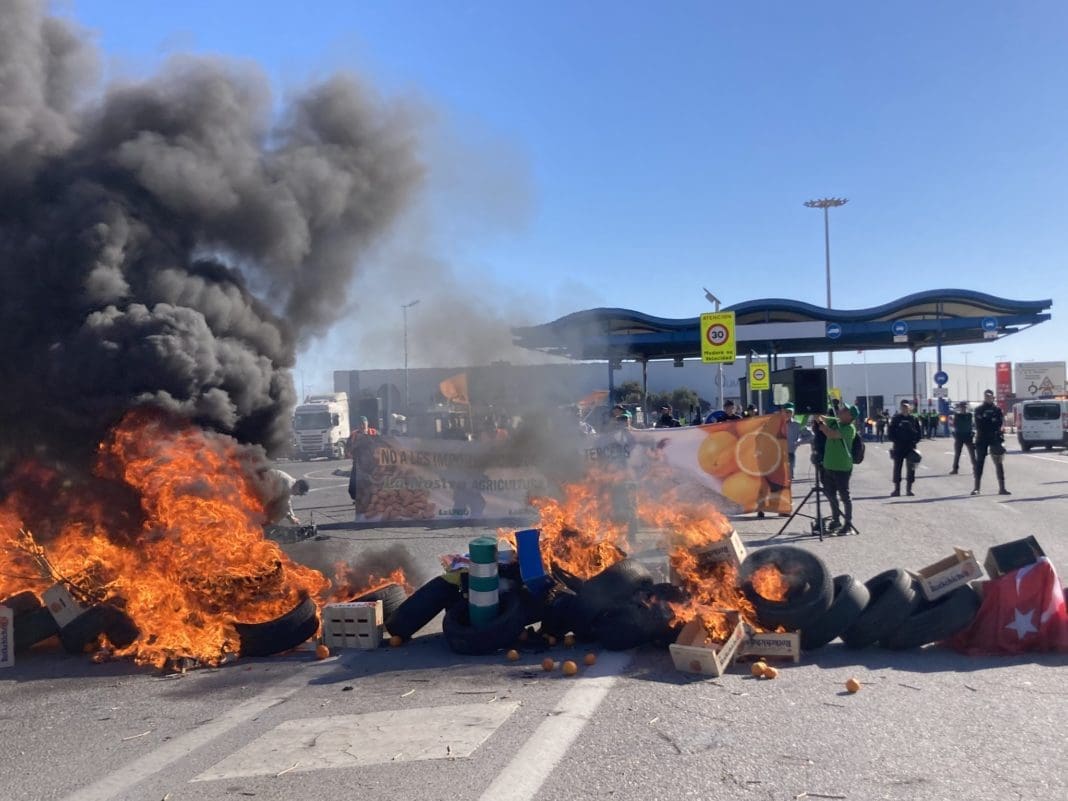 La Unió Llauradora es la organización que había convocado oficialmente la movilización de protesta en el puerto castellonense que ha terminado con una quema de contenedores para bloquear el paso de los vehículos.