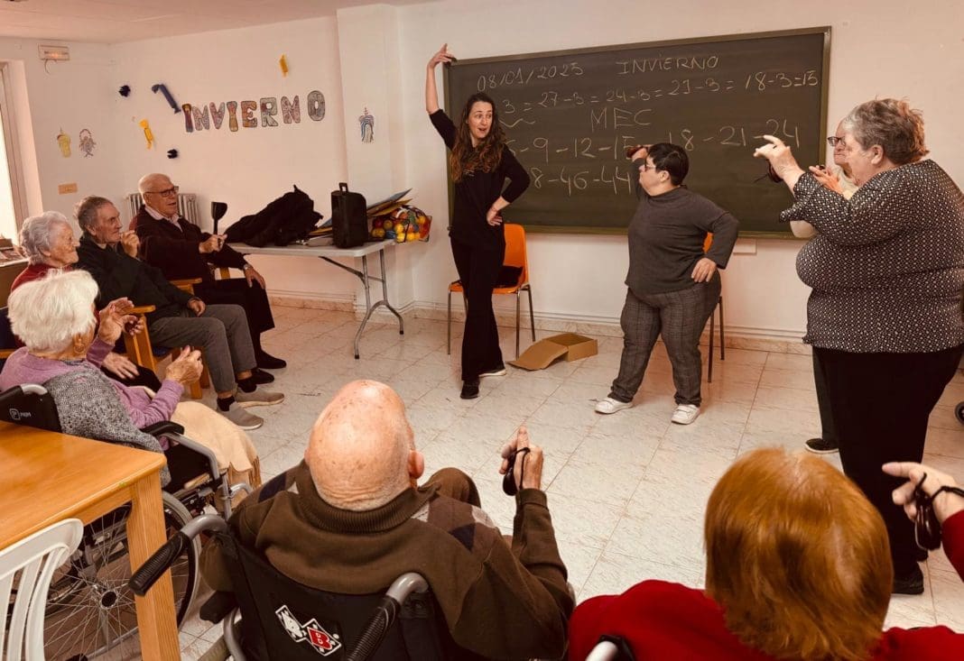 Con todo, los profesores Olga Martínez (danza) y Antonio Llopis (música) son los encargados de conducir los talleres artísticos y crear un momento de ocio para los residentes. Por un lado, en el taller de danza se realiza un trabajo consciente del movimiento en el que la psicomotricidad es el denominador común de las sesiones. También se realiza trabajo con castañuelas con el fin de trabajar el movimiento de las articulaciones de las manos. Por otro lado, en el taller de música, las canciones y los ritmos populares marcan la programación. De este modo, la actividad también favorece al trabajo de la memoria, al tiempo que el alumnado trabaja sobre temas musicales que son de su gusto.