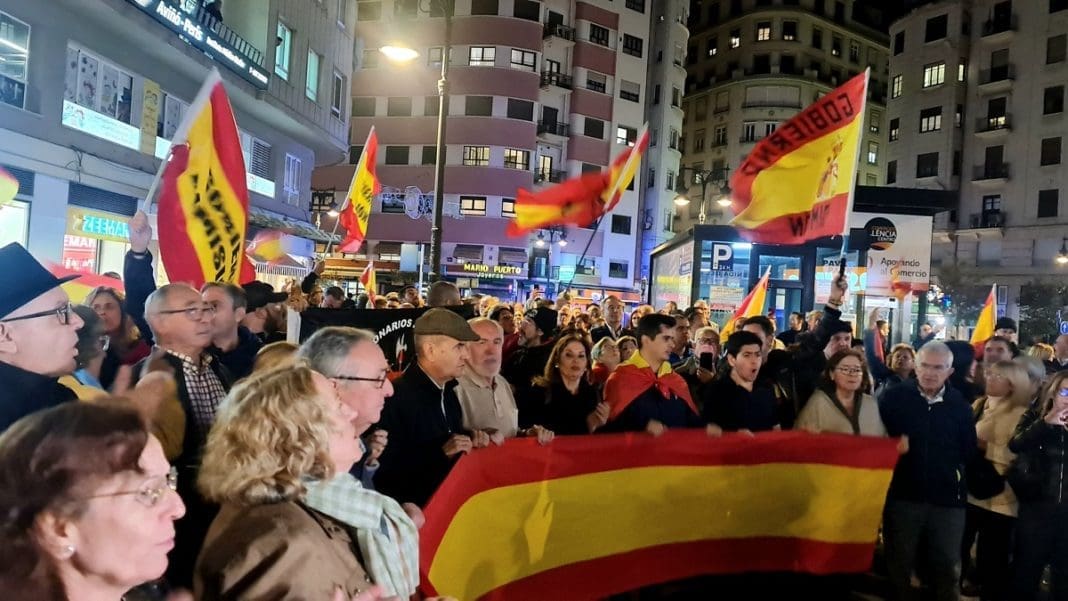 El comunicado se produce horas después de que se celebraran concentraciones ante las sedes del PSPV-PSOE en la ciudad de Valencia y del PSOE en la madrileña calle de Ferraz. En ambos casos, convocadas por la plataforma Revuelta, con personas que portaban banderas de España y banderas franquistas y que gritaban consignas, en el caso de Valencia como “socialistas, terroristas” y “España no se vende, España se defiende” además de insultos al presidente del Gobierno al que acusaban de «delincuente».
