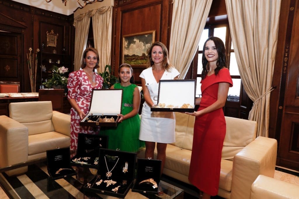 La alcaldesa, Begoña Carrasco, ha entregado a las reinas los aderezos que estrenarán este fin de semana, en las imposiciones de bandas.
