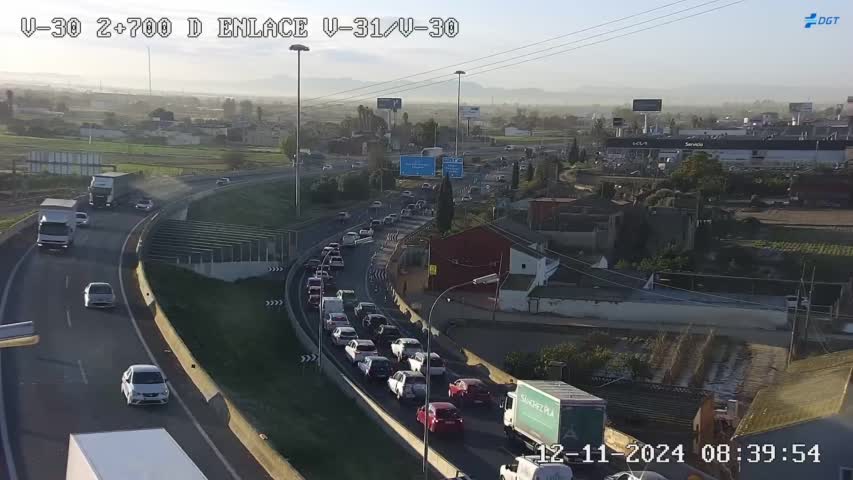 En la autovía V-30 hay tres kilómetros de retención entre el Horno de Alcedo y Mislata en dirección hacia la A-7, y cinco kilómetros entre Benimámet y Castellar-Oliveral hacia València.