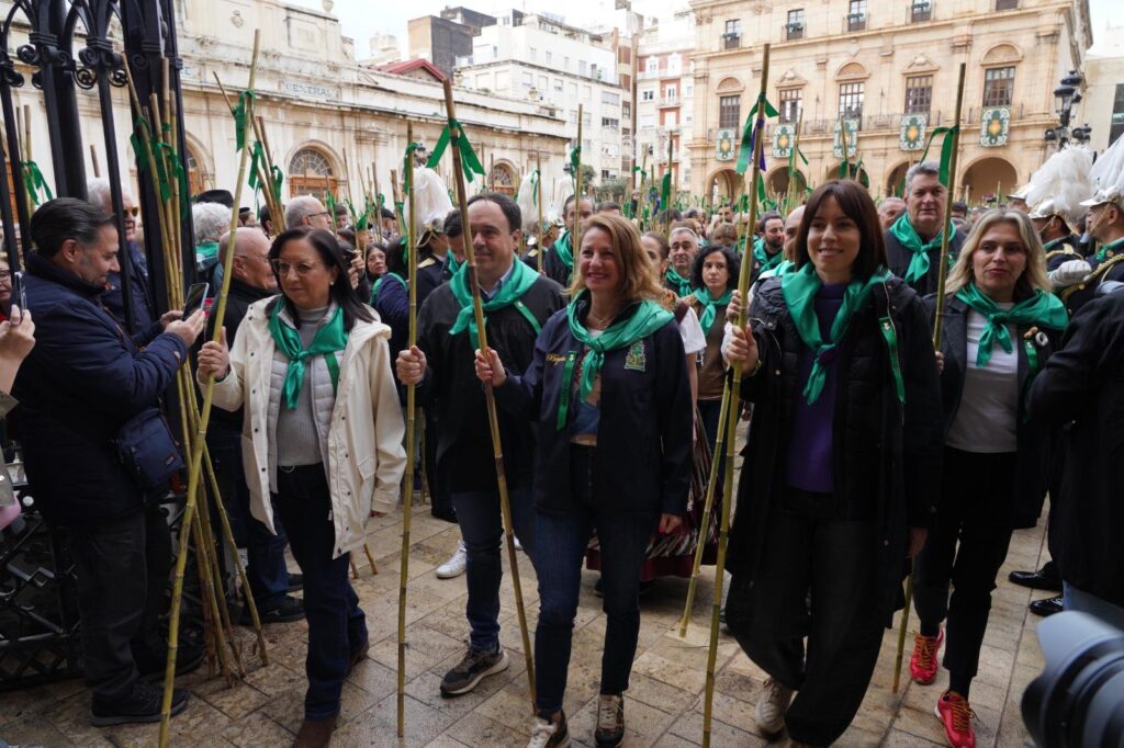 El Ayuntamiento ha vuelto a ser desde primera hora el gran punto de encuentro de la mañana. Allí se han concentrado representantes institucionales, reinas de las fiestas, colectivos y vecinos antes del inicio de la marcha, en un ambiente marcado por la tradición, la participación y las ganas de vivir la fiesta tras el arranque del sábado condicionado por la lluvia.