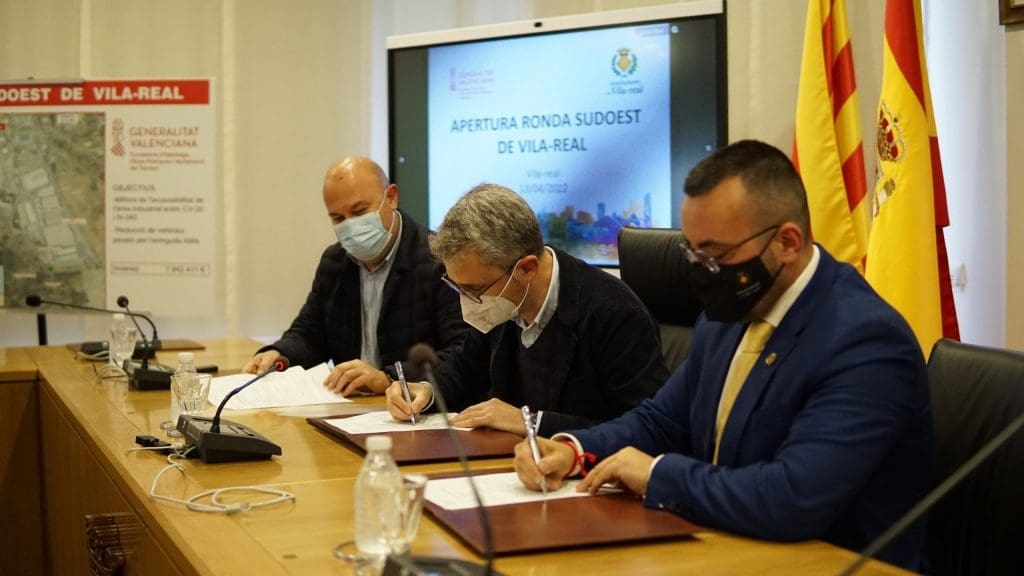 La ronda Suroeste de Vila-real ya es una realidad. Tras casi tres décadas de promesas, un proyecto paralizado por el camino y dos años de obras, la circunvalación de la ciudad se ha abierto esta tarde definitivamente al tráfico, una vez el alcalde, José Benlloch, y el conseller de Política Territorial, Arcadi España, han firmado la recepción de la infraestructura, que ha supuesto una inversión de 7,8 millones de euros de la Generalitat y otros 4,6 millones que tuvo que pagar el Ayuntamiento en expropiaciones en el año 2011. Benlloch y España, acompañados por el concejal de Territorio y director territorial de la Conselleria, Emilio M. Obiol, han destacado la relevancia del acto, que supondrá “un antes y un después en las comunicaciones de la Plana y del eje azulejero”.