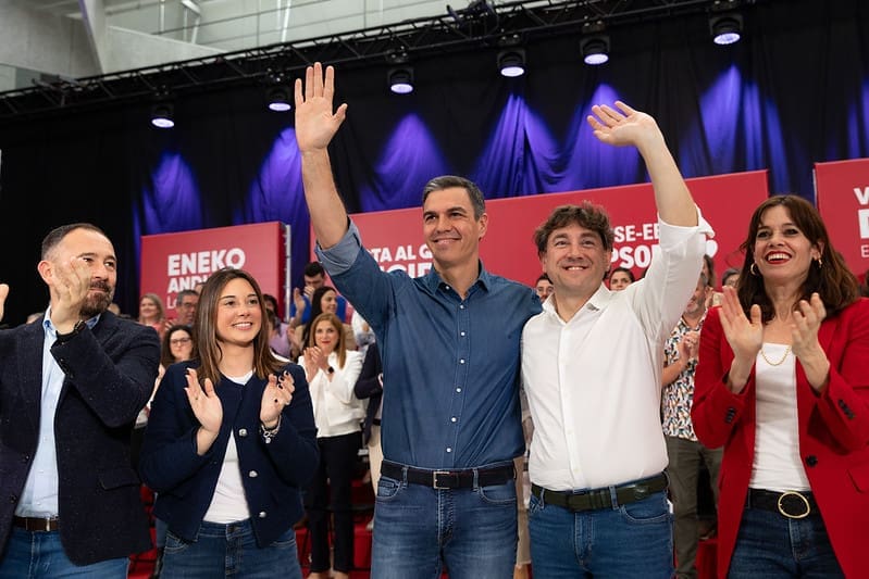 Para Sánchez, el candidato socialista a lehendakari, Eneko Andueza, es el único que puede “encarar” “los desafíos” actuales de Euskadi. Retos que “tienen que ver con reforzar los servicios públicos, la reindustrialización, trabajar por la igualdad, hacer frente al invierno demográfico, la cultura diversa y no uniforme”.