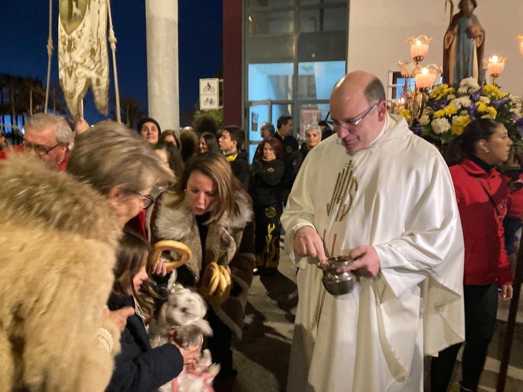 San Antoni procesionó acompañado de los fieles llegar a la asociación de vecinos del barrio donde de nuevo con la bendición de las mascotas y el reparto de rollos se repitió la escena más tradicional que honra al patrón de los animales.