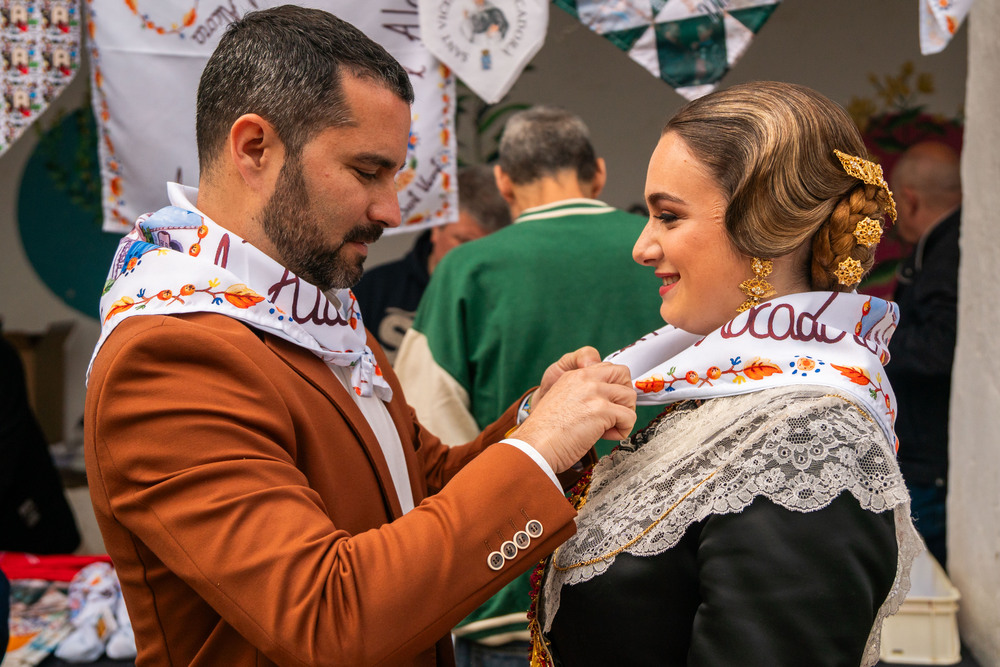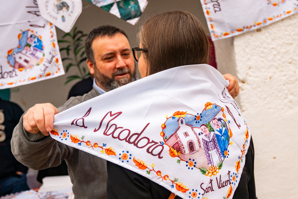 Uno de los elementos más representativos de esta celebración ha vuelto a ser la Mocadorà, una tradición ligada al siglo XX que recupera la antigua costumbre por la que los novios regalaban a sus parejas un pañuelo con dulces a la salida de la misa en la ermita de San Vicente.