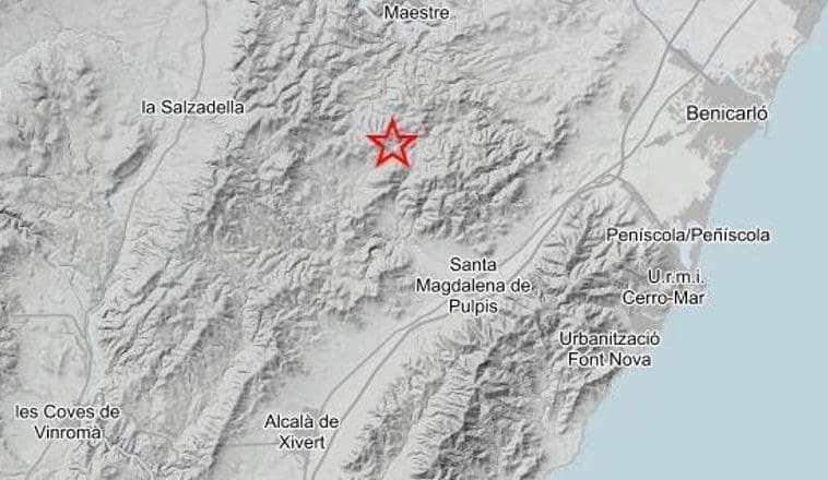 El terremoto ha tenido una intensidad de 2,1 de magnitud en la escala de Ritcher, se ha localizado a dos kilómetros de profundidad, latitud 40.4049 y longitud 0.2651.