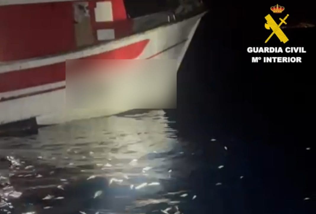 Los guardias civiles ordenaron al patrón del barco que liberase el pescado de la red puesto que se estaba extrayendo de fondos marinos no autorizados para ese tipo de arte (en el subcaladero mediterráneo queda prohibido el uso de redes de cerco en fondos inferiores a 35 metros).