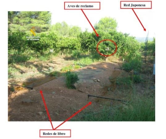 Al mismo tiempo tenían instalado otro medio prohibido de caza conocido como “red japonesa” o “de niebla” (malla vertical muy fina invisible incluso para la aguda visión de las aves).