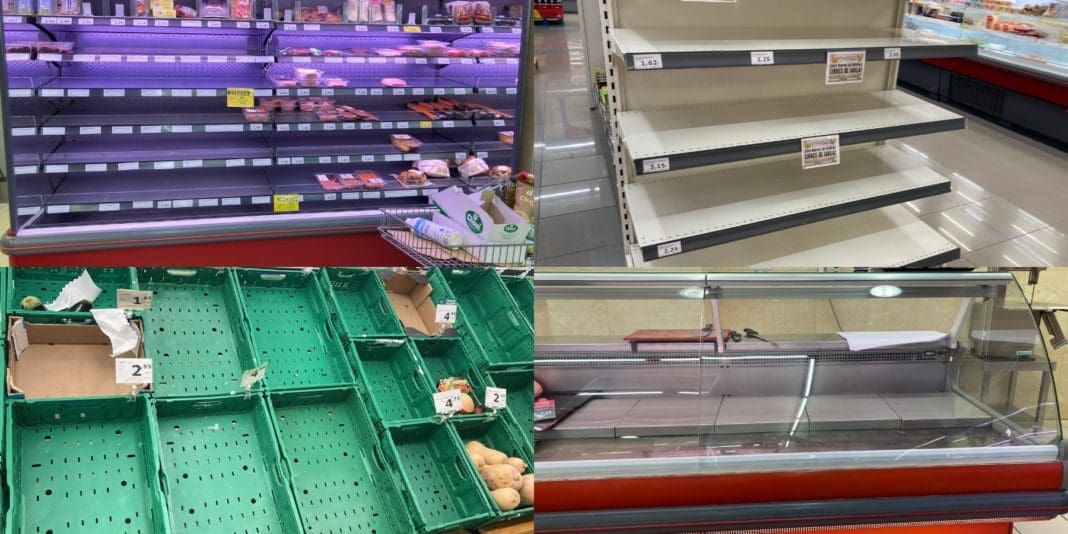 Las superficies comerciales de la provincia ven vacías sus estanterías, mientras las rutas logísticas comienzan a reconfigurarse para restablecer suministros.
