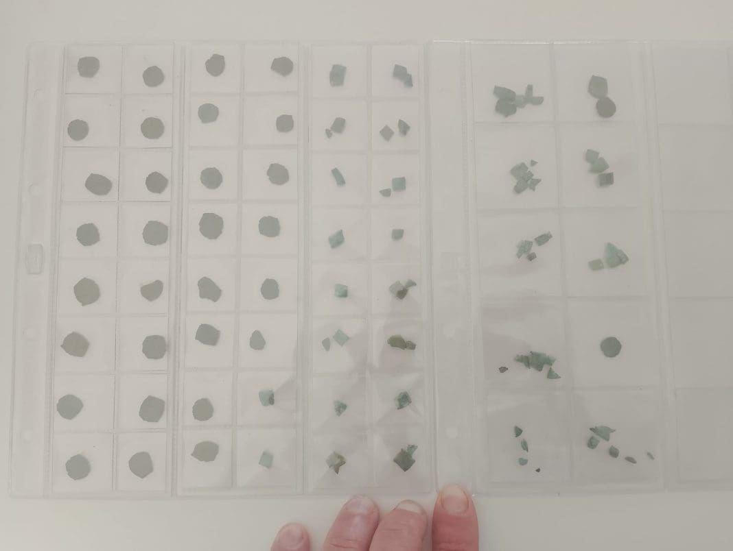 Después, fue recogiendo más trozos, lo que se denominan retales y barritas de bronce, algunos milimétricos hasta que localizó un cospel, que es una pieza circular en el que se acuña la moneda. Al final, encontró una treintena de cospeles, todos ellos acumulados en una zona concreta de la explanada inmediata al cementerio.