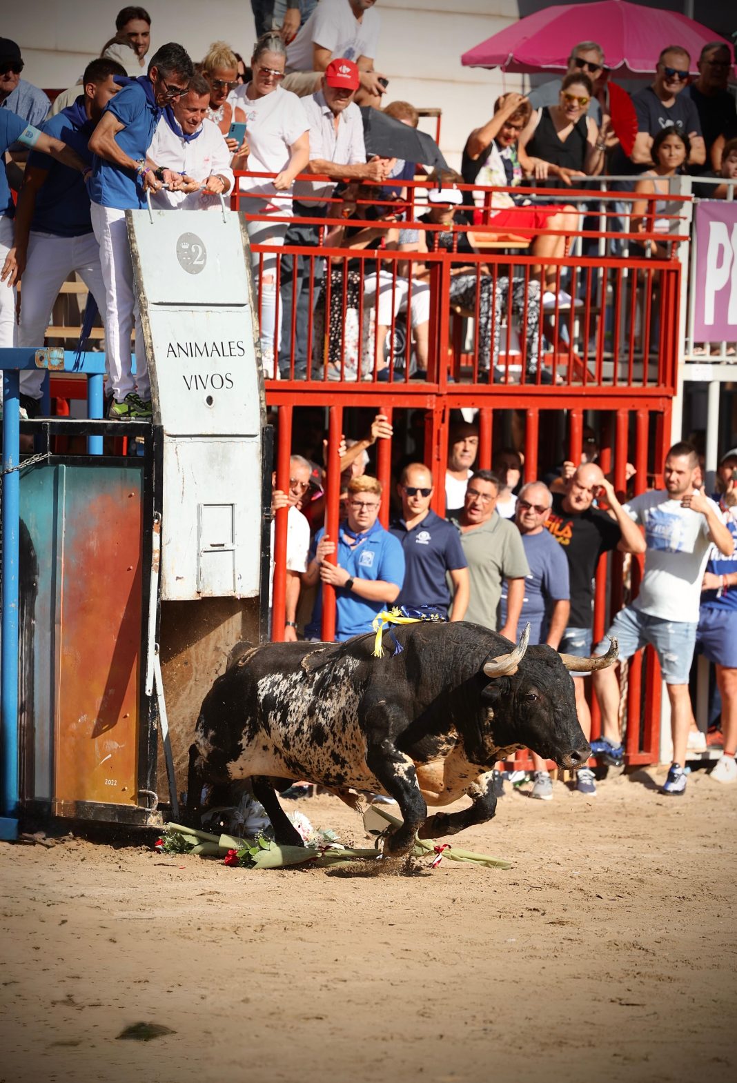El ejemplar, “Trabajador”, patrocinado por el Ayuntamiento de Burriana y procedente de la reconocida ganadería Torrestrella, reconocida por la bravura y calidad de sus ejemplares, ha sido recibido con gran expectación en la plaza Mayor, donde burrianenses y visitantes de localidades vecinas se han congregado para ver la salida del primer astado del programa taurino de las fiestas, uno de los momentos más esperados por peñas, aficionados y visitantes.