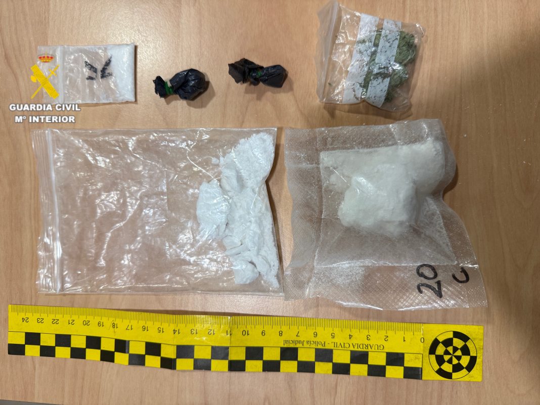 En el operativo se han intervenido 34,82 gramos de cocaína0,91 gramos de ketamina y 1,8 gramos de marihuana. Además, se encontraron 1.870 euros en efectivo, una cantidad que ha reforzado los indicios de un presunto delito de tráfico de drogas.