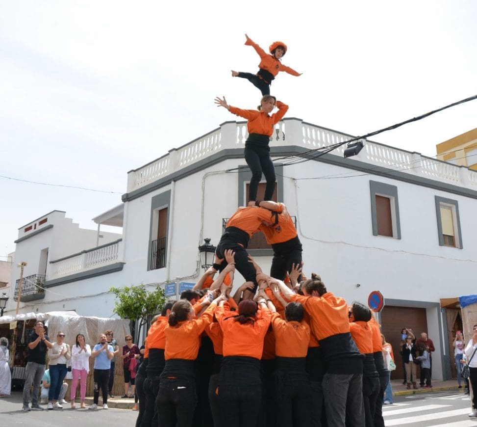 El momento álgido de la mañana ha llegado con el espectáculo de la Jove Muixeranga de València, que en su recorrido por las casi 200 casetas que componen la feria este año han deleitado al público con una decena de figuras. La dificultad, destreza y equilibrio que ha demostrado el grupo valenciano ha sido recompensada con aplausos y ovaciones por parte de los asistentes.