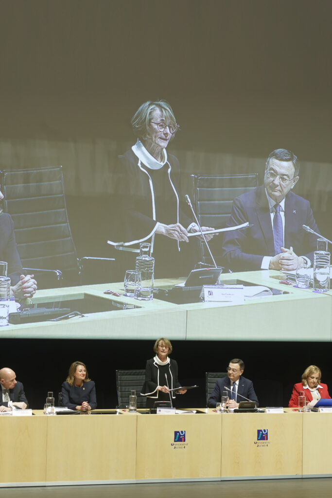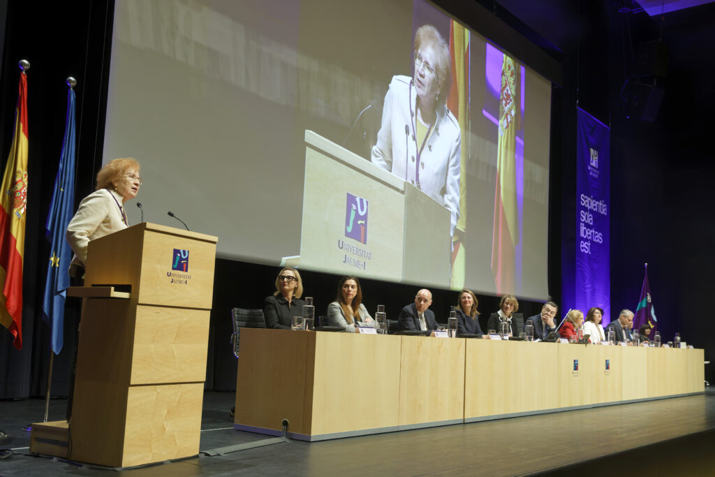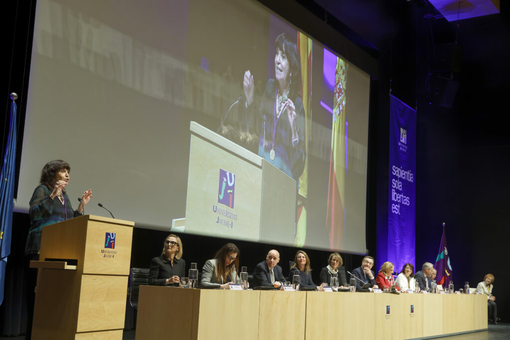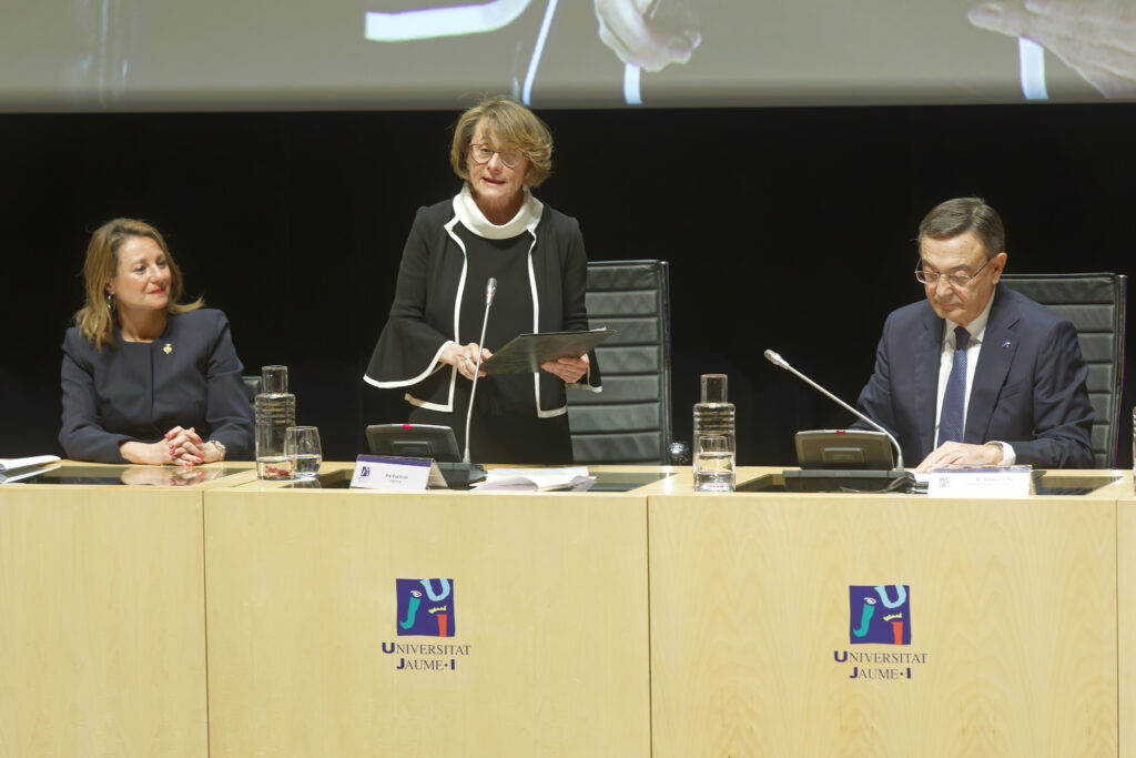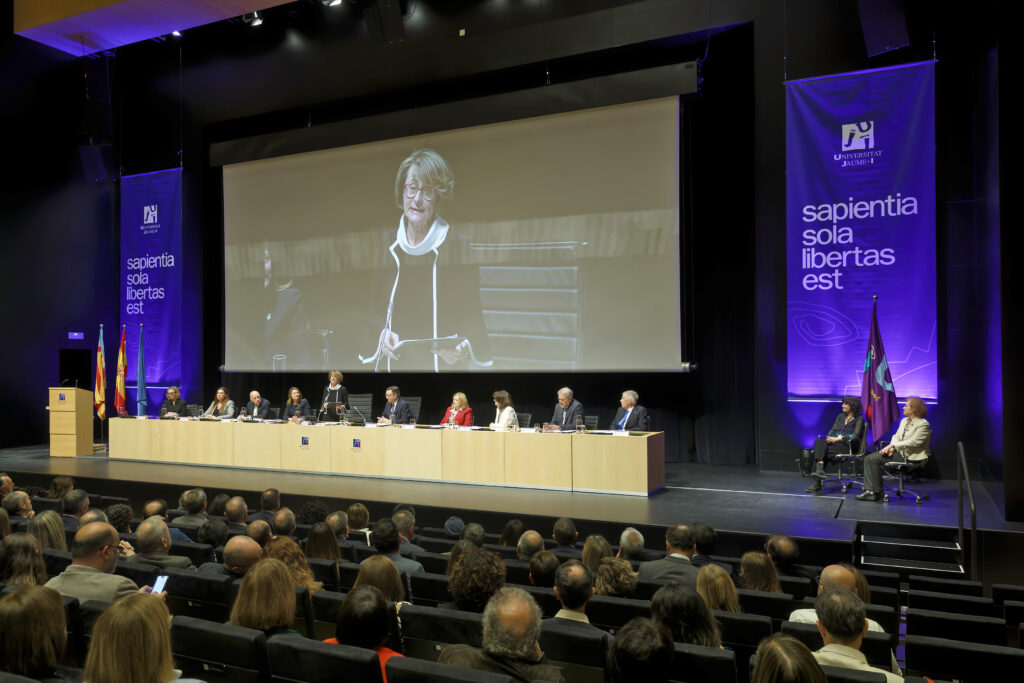 El acto ha estado presidido por la rectora Eva Alcón, acompañada por el secretario general de Universidades, Francisco García Pascual; la secretaria autonómica de Universidades, Esther Gómez Martín; la alcaldesa de Castelló, Begoña Carrasco; así como representantes académicos de distintas universidades, entre ellos la rectora de la Universidad de Zaragoza, Rosa María Bolea; la rectora de la Universidad de Alicante, Amparo Navarro; el rector de la Universidad Miguel Hernández de Elche, Juan José Ruiz; el rector honorario de la UJI, Francesc Michavila; el presidente del Consejo Social, Sebastián Pla, y la secretaria general de la UJI, Cristina Pauner.
